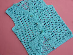 A free crochet pattern using worsted-weight yarn. Pattern attributes and techniques include: Mesh, Sleeveless, Worked as One Piece.