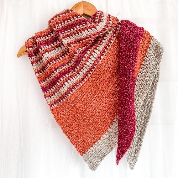 This colorful Fall-themed shawl is simple to crochet and is suitable for beginners. The instructions on the webpage are super detailed and easy to follow.