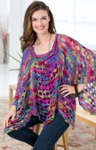This free crochet pattern uses Aran-weight yarn. Pattern attributes and techniques include: Fringe, Lace pattern, Seamless, Top-Down.