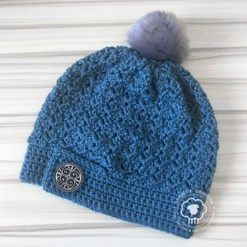 This cozy hat features attractive work in both the body and the brim. A button closure adds interest. It's great for beginners as well as more experienced crocheters.
