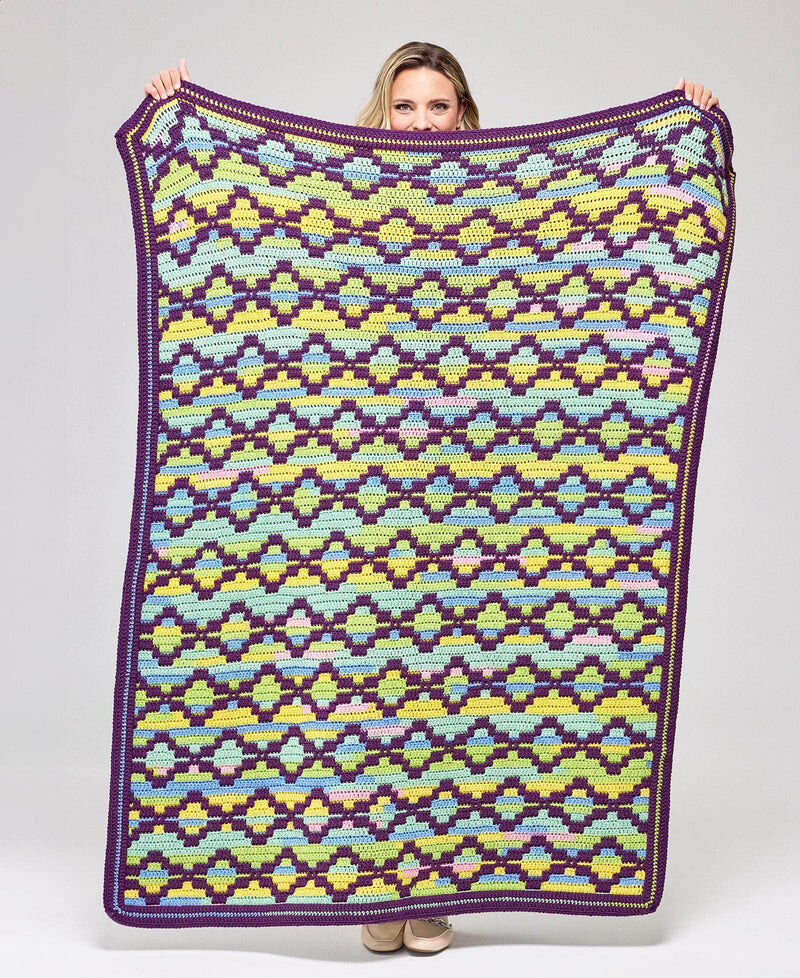 Free crochet pattern using worsted-weight yarn. Pattern attributes and techniques include: Colorwork, Mosaic pattern.
