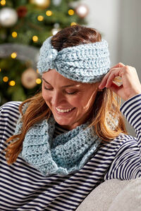 If you're looking to crochet a matching hat and cowl, look no further than this offering from Drops. The Pinecone set features fantastic texturework.