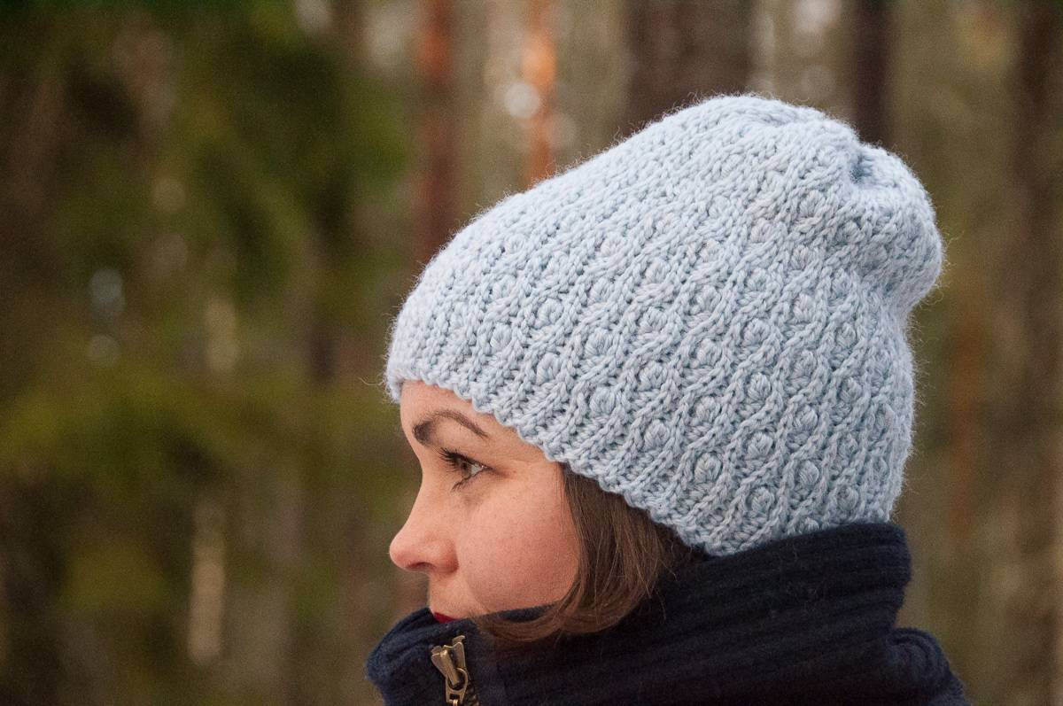 This cute slouch hat features a fun texture and sideways construction. It is easy to crochet, as the motif repeats itself throughout.