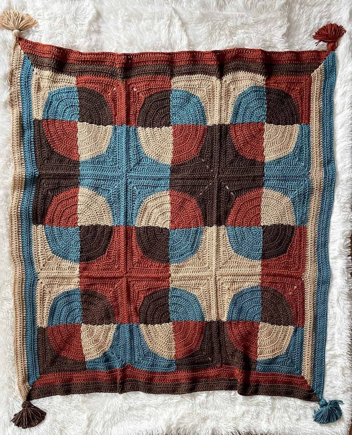 Free crochet pattern using worsted-weight yarn. Pattern attributes and techniques include: Colorwork, Granny, Granny Square, In-the-round, Seamed.