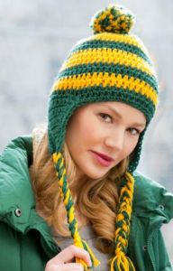 A free crochet pattern using aran-weight yarn. Pattern attributes and techniques include: Earflap.