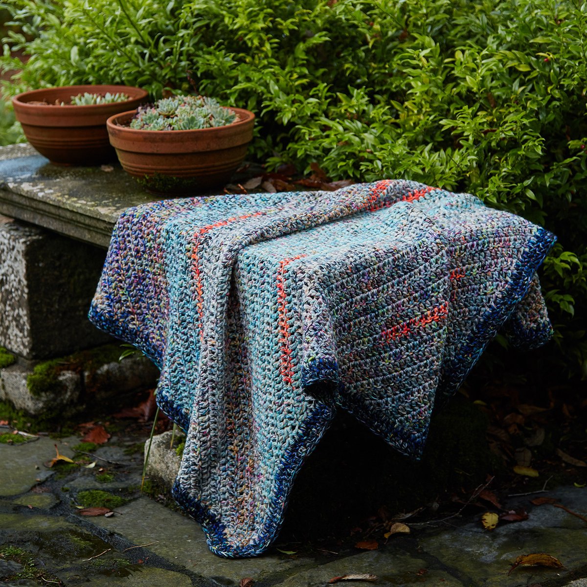 | Pattern Attributes | Corner-to-corner, Worked in several strands of yarn |