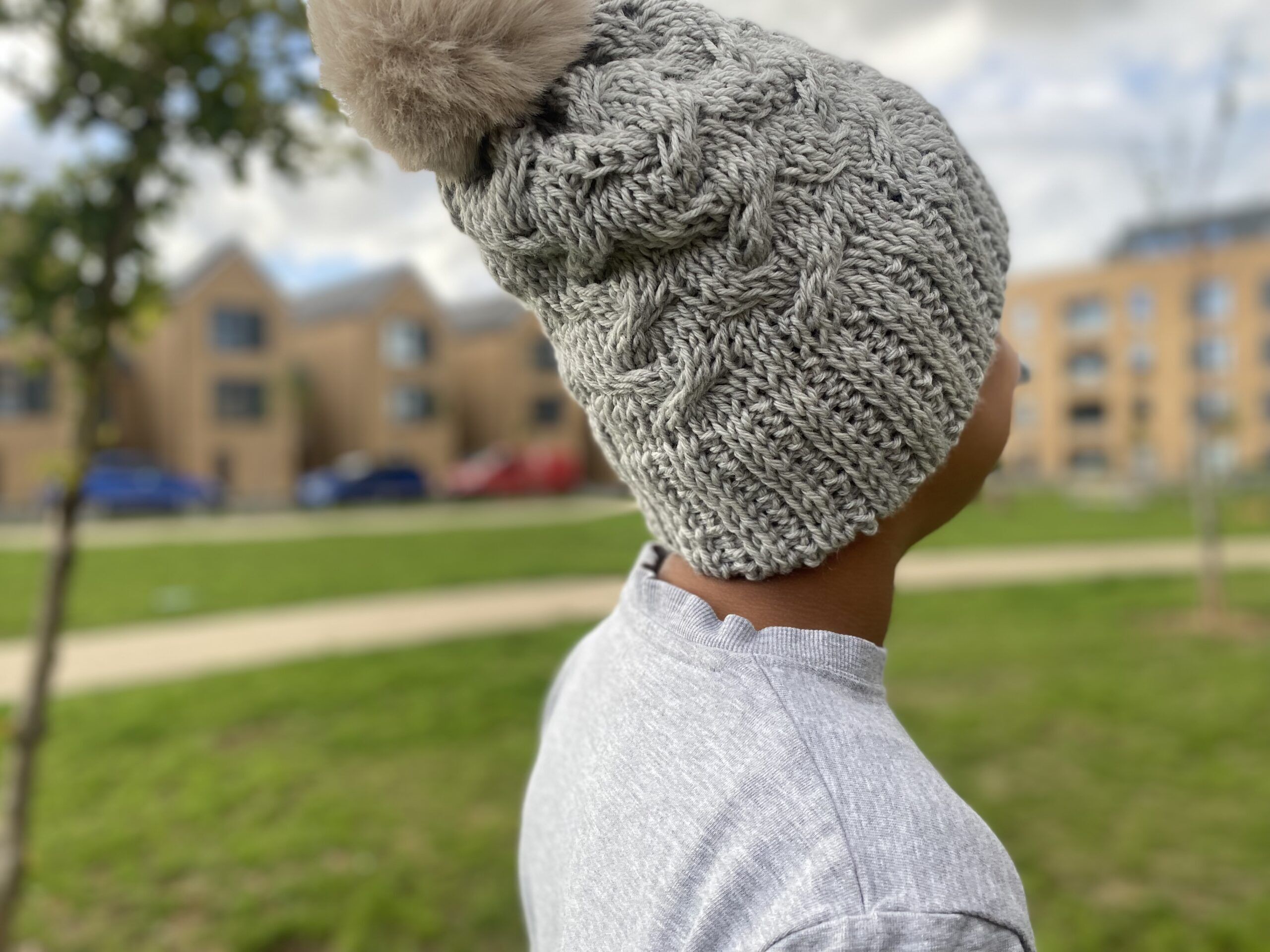 A free crochet pattern using dk-weight yarn. Pattern attributes and techniques include: Bottom-Up, Cables, Seamed, Tunisian.