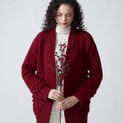 This free crochet pattern uses worsted-weight yarn. Pattern attributes and techniques include: Cable, Long Sleeve, Pockets, Relaxed fit, Seamed.